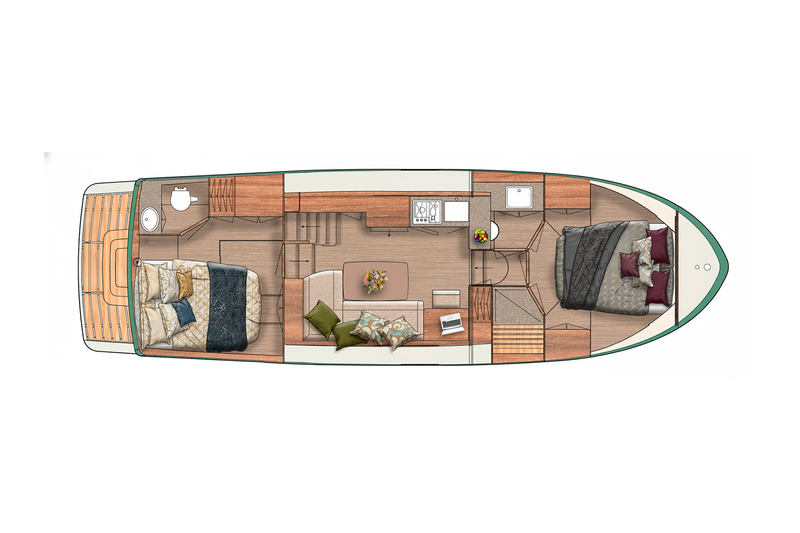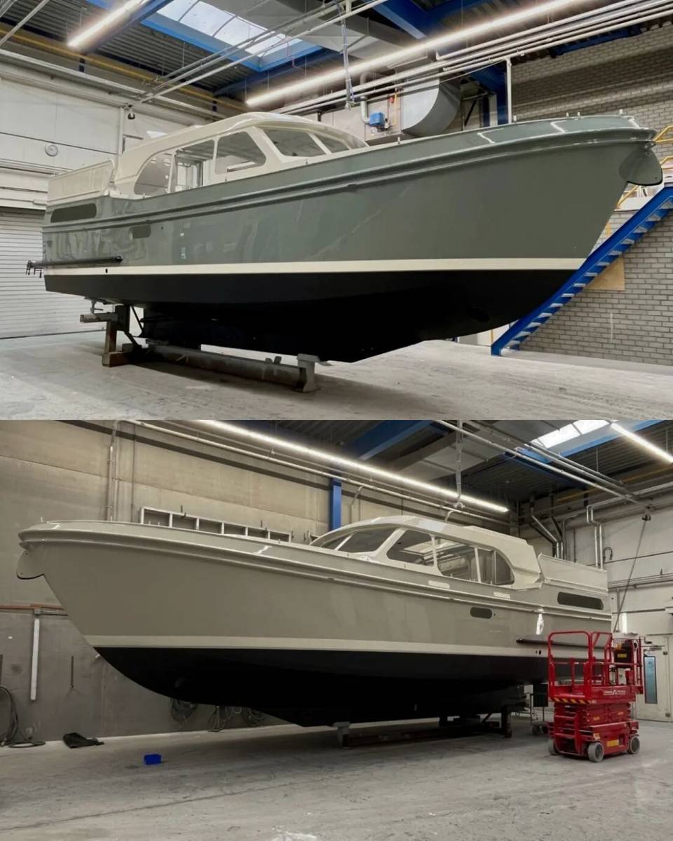Auch für das Äußere gibt es neue Optionen. Linssen führt zwei neue Außenfarben ein: Mystic Green und Terra Taupe. Mystic Green verleiht der Yacht einen auffälligen, zeitgemäßen Look. Terra Taupe hingegen ist eine ruhige, zeitlose Farbe mit einem modernen Touch. Beide Optionen verleihen den Yachten ein frisches und unverwechselbares Aussehen auf dem Wasser.