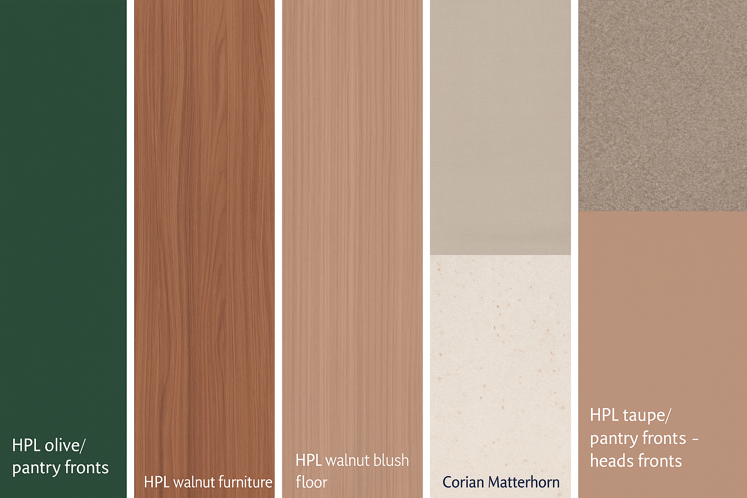 Olive Grove wirkt frisch und natürlich, mit olivgrünen Details, die eine helle und moderne Atmosphäre schaffen.