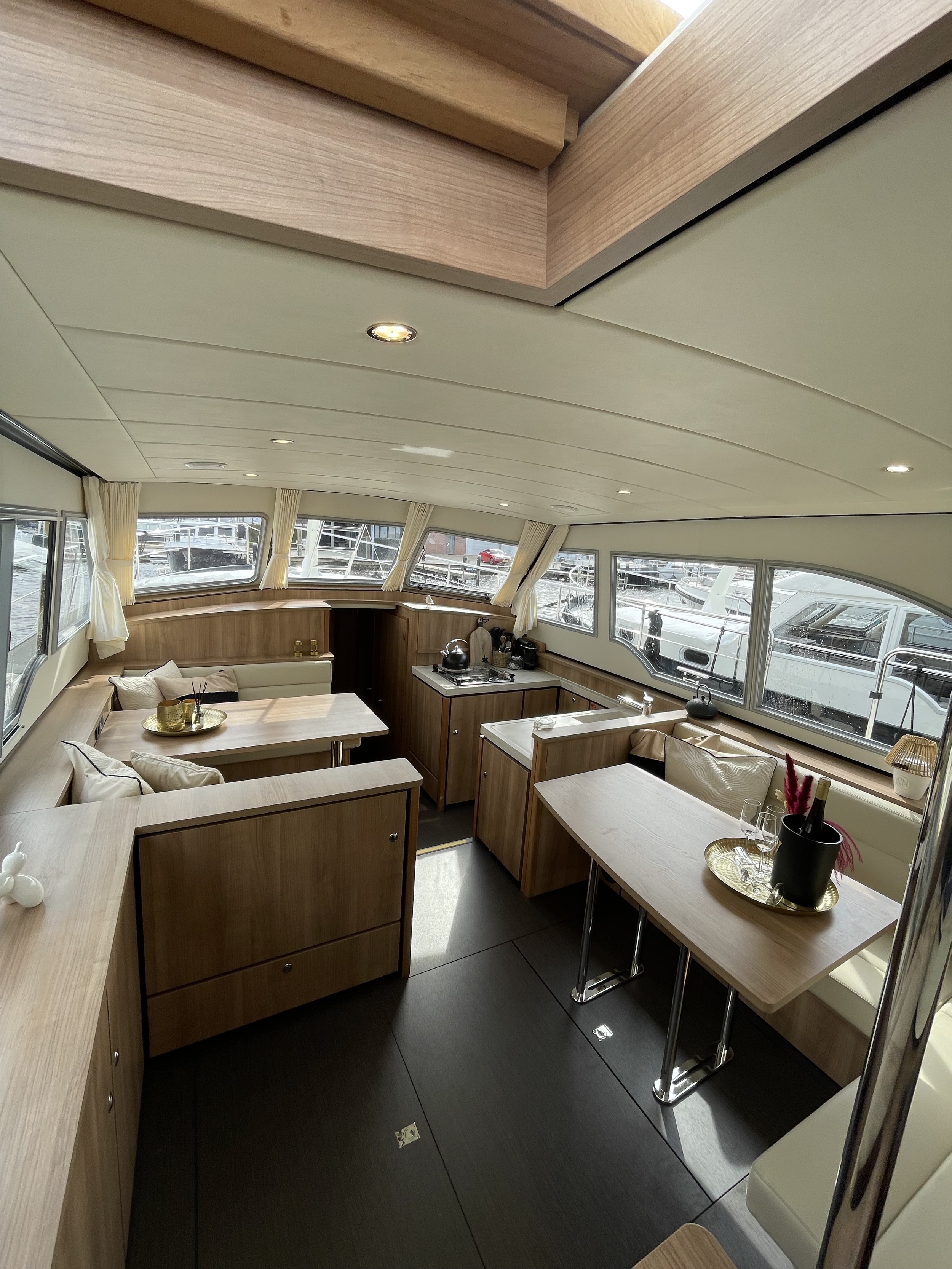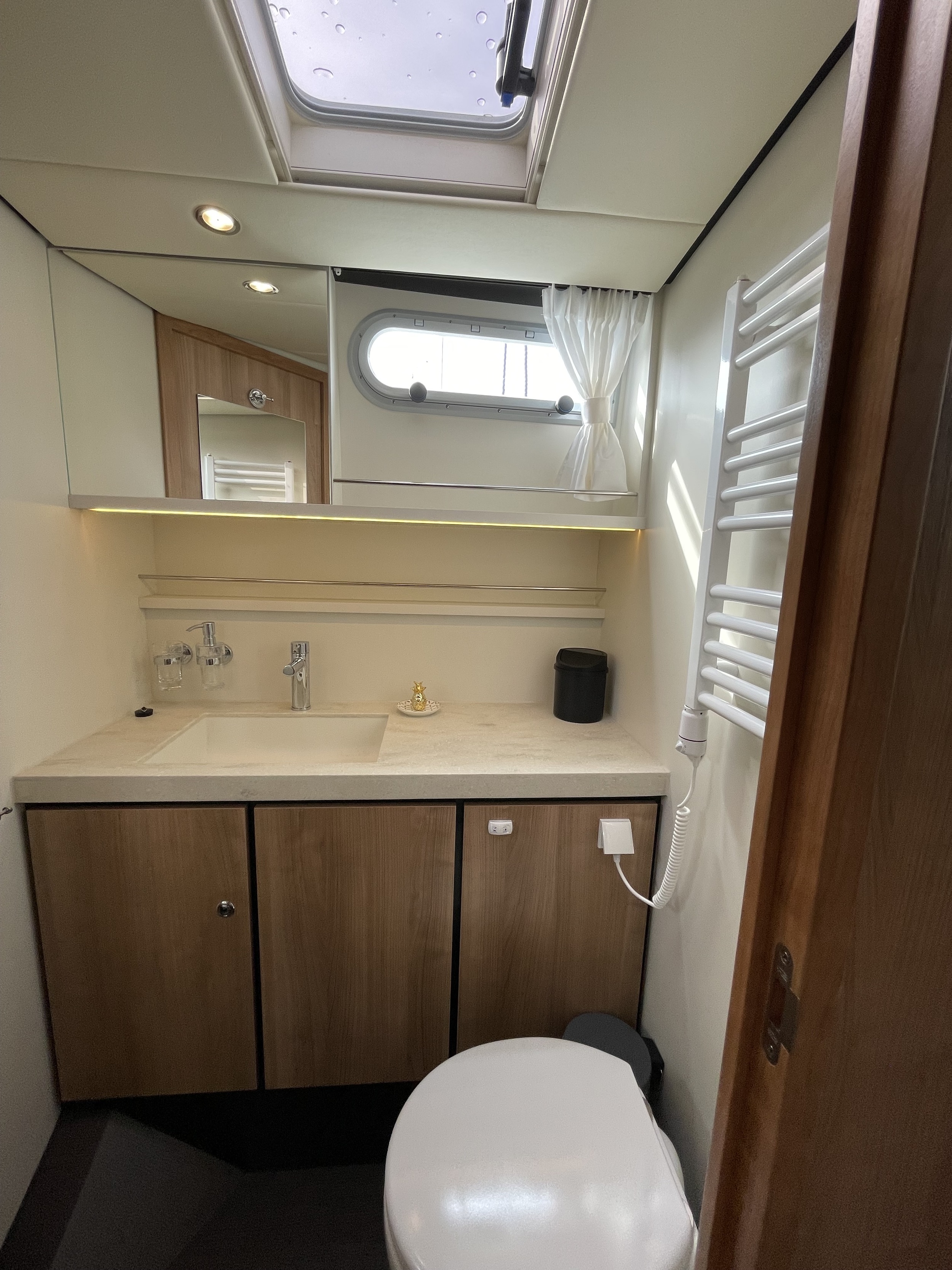 Cabins and the bathrooms are equipped with portholes and roof hatches which provide plenty of light and fresh air in the living spaces.