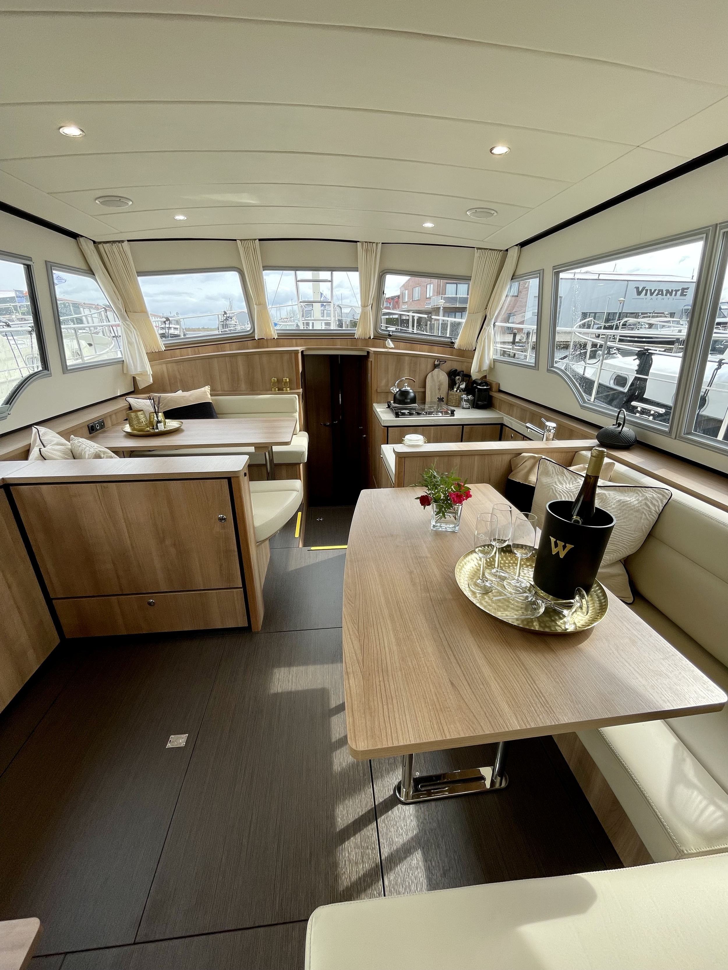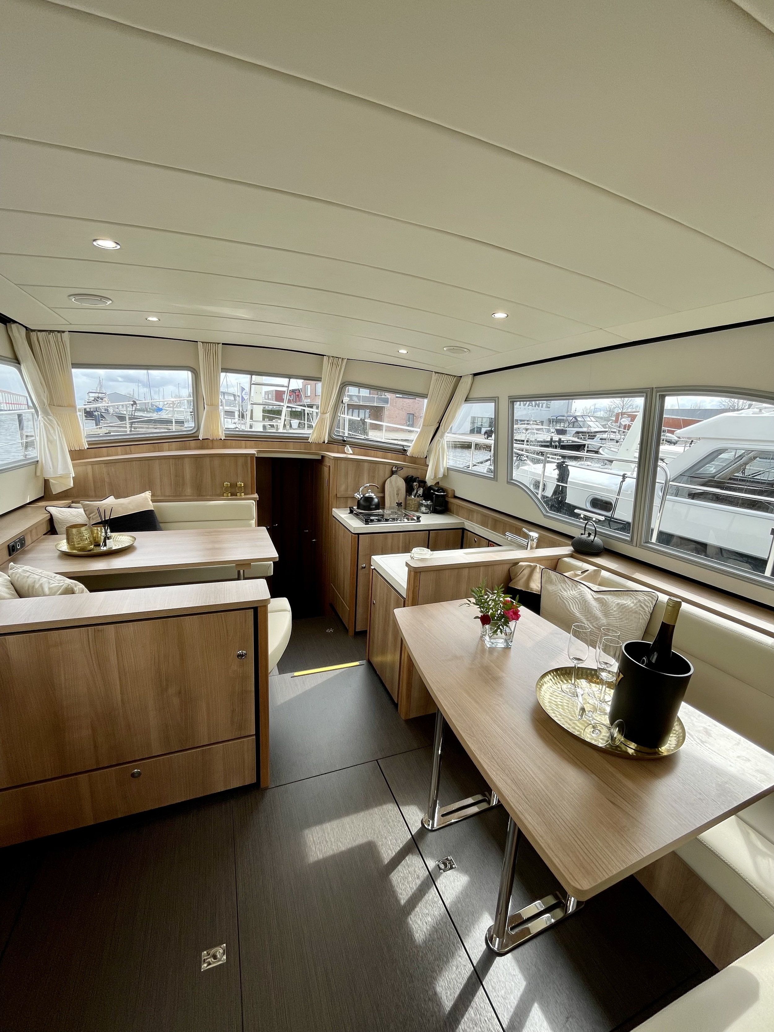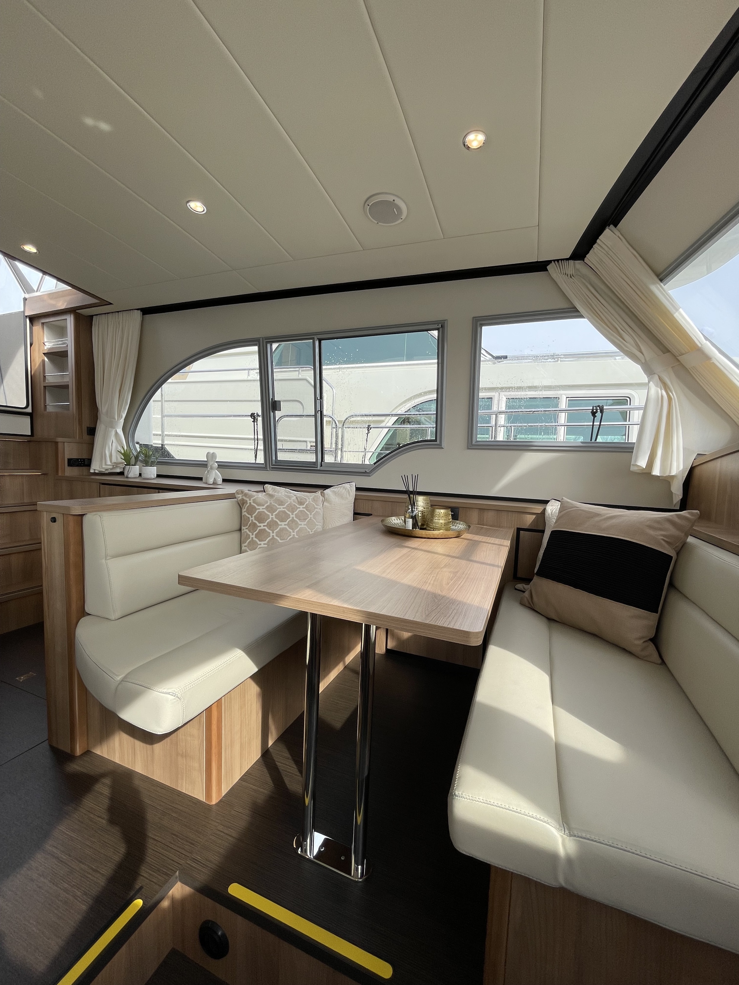 The Linssen Grand Sturdy 40.0 AC, the chic space wonder from Linssen Yachts. The interior is made of high-quality HPL in a light oak look.