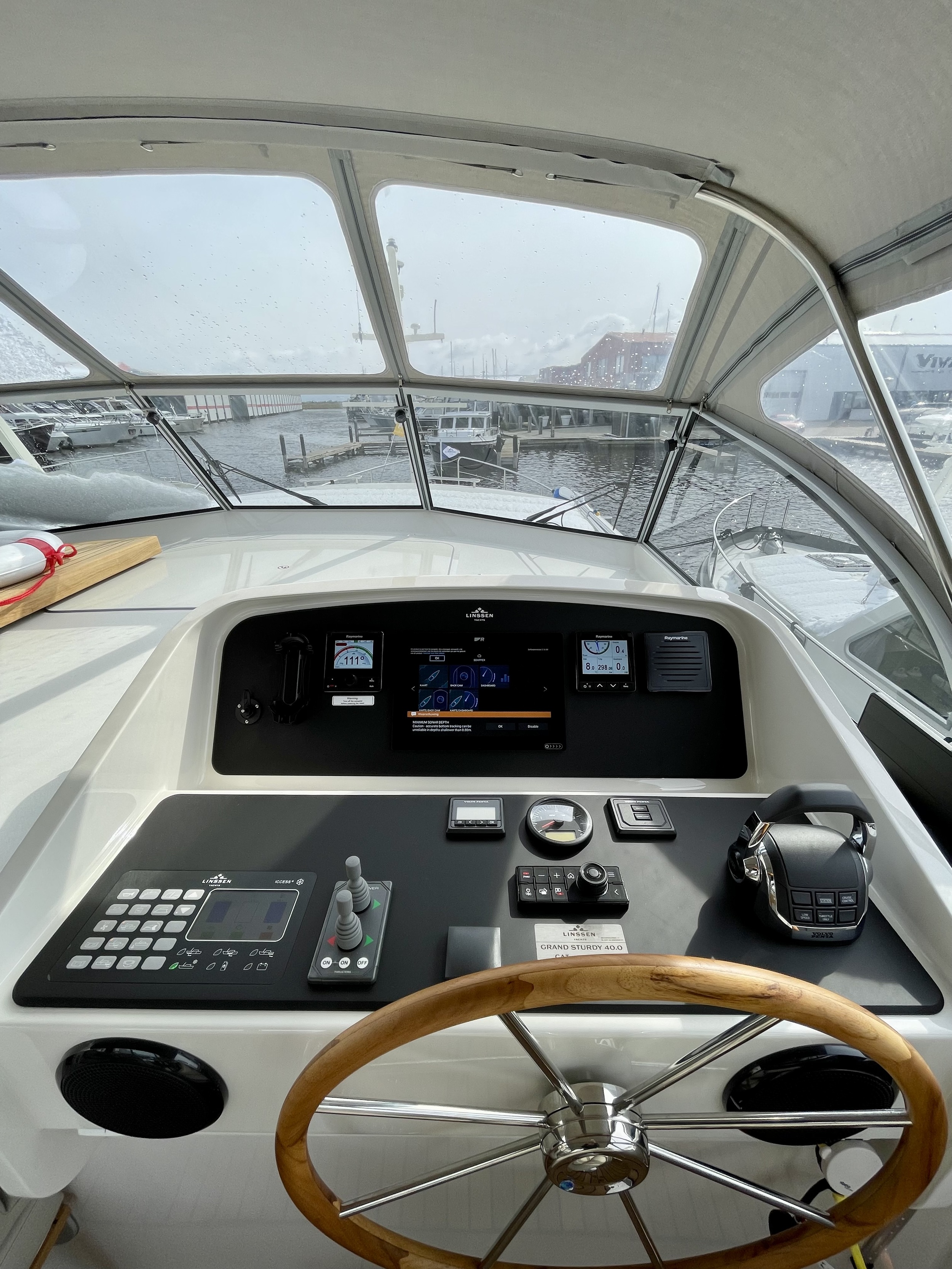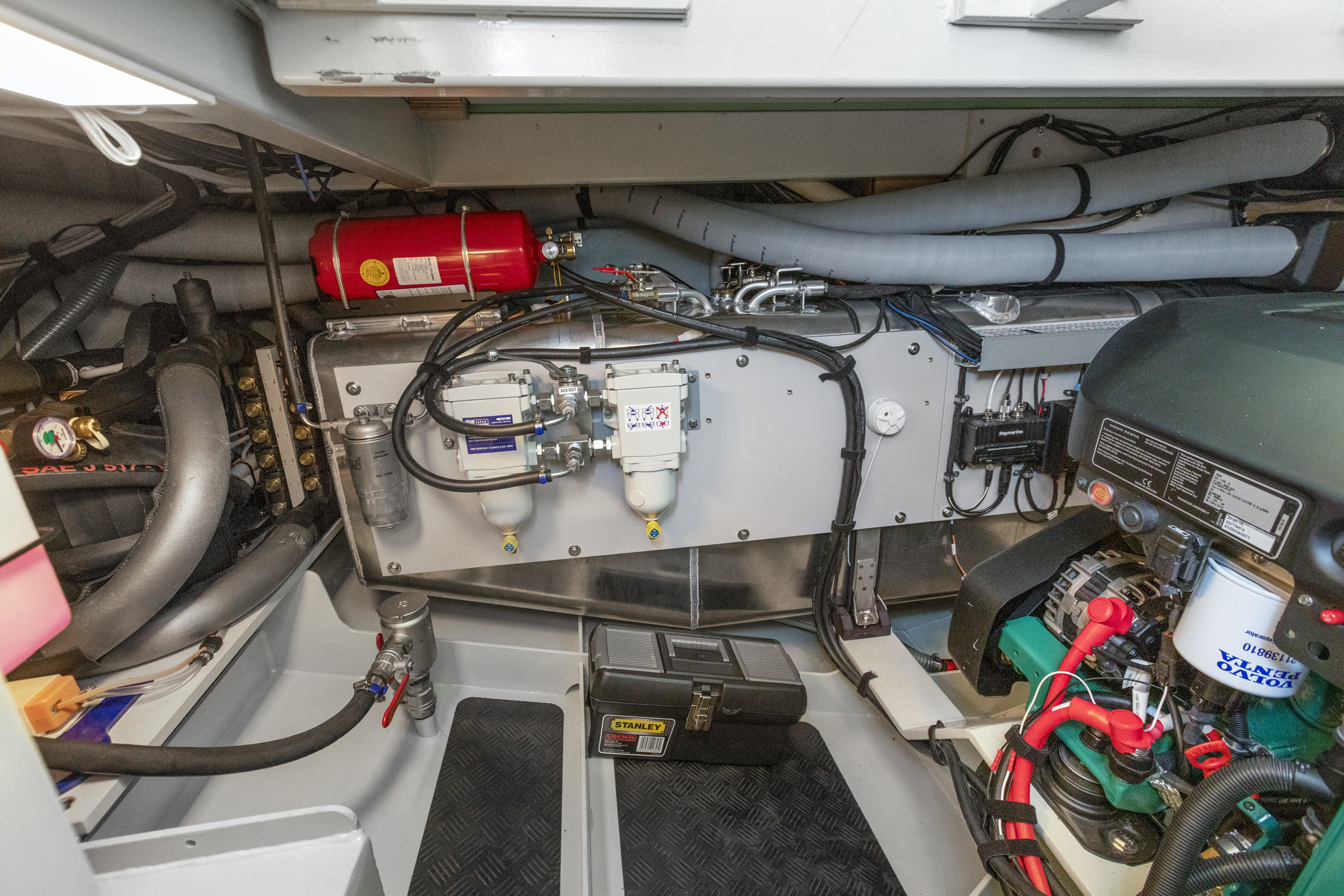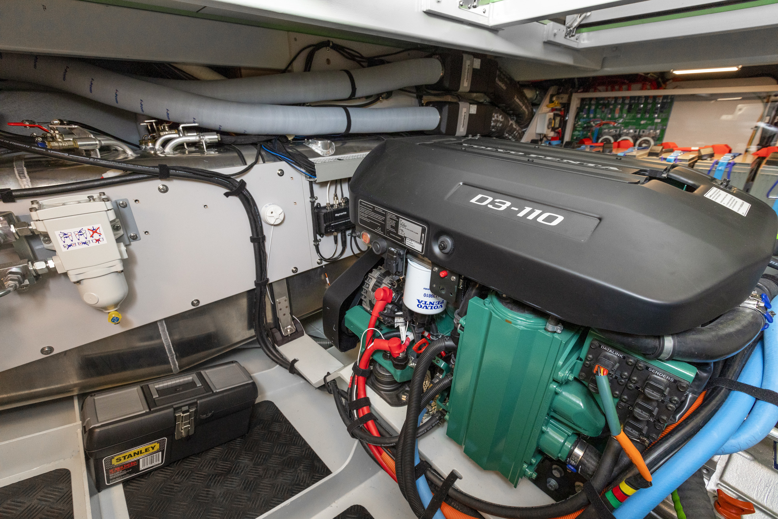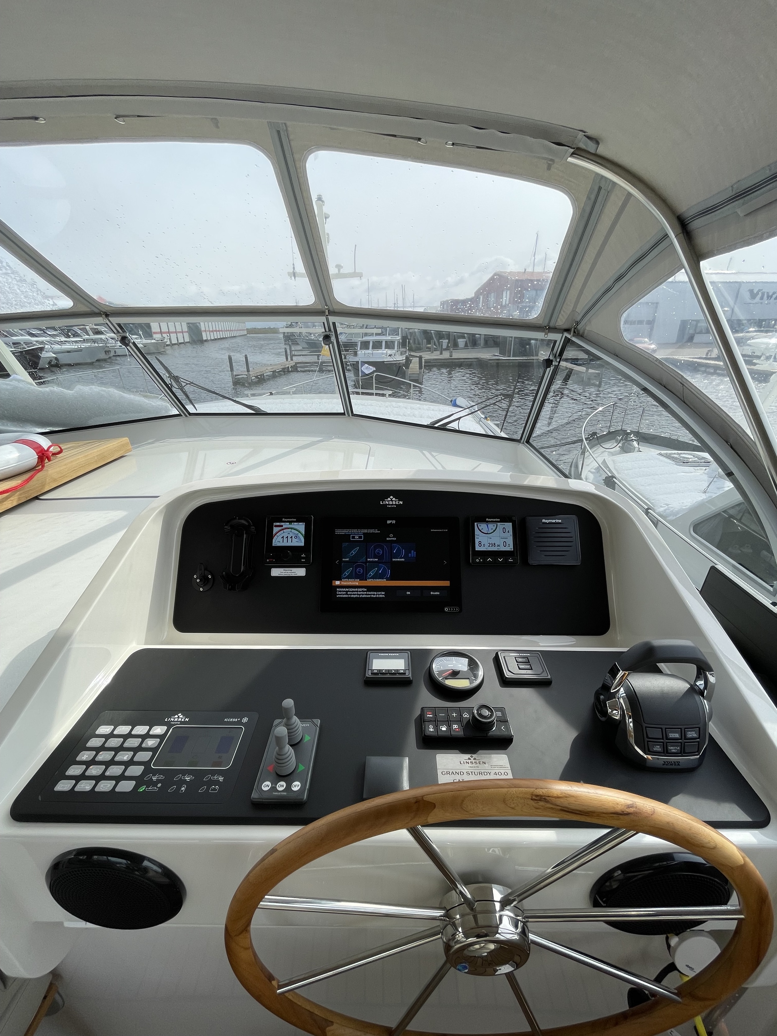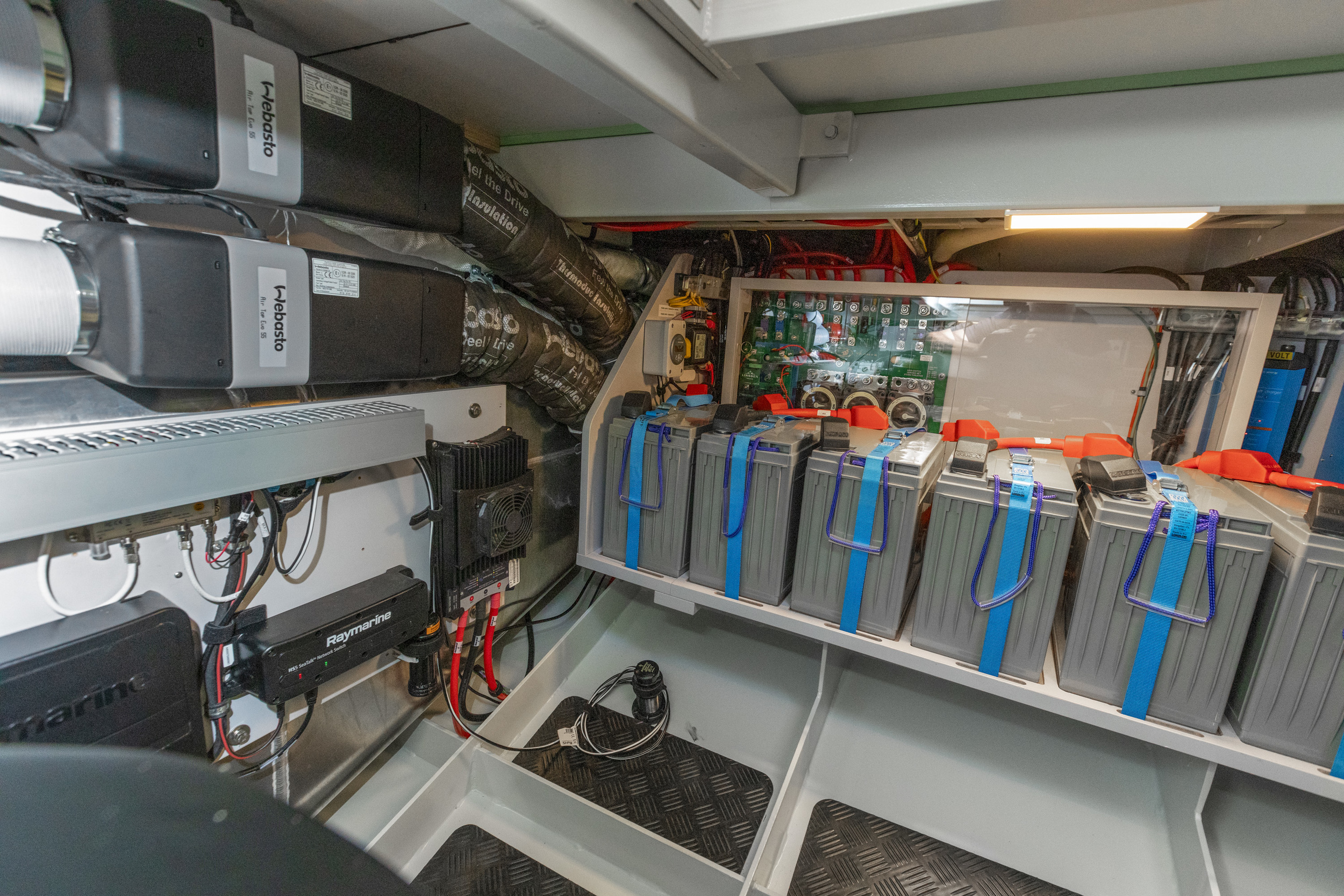 The yacht is equipped with a full navigation package including a plotter, VHF radio, tridata, etc., all from the renowned Raymarine brand.