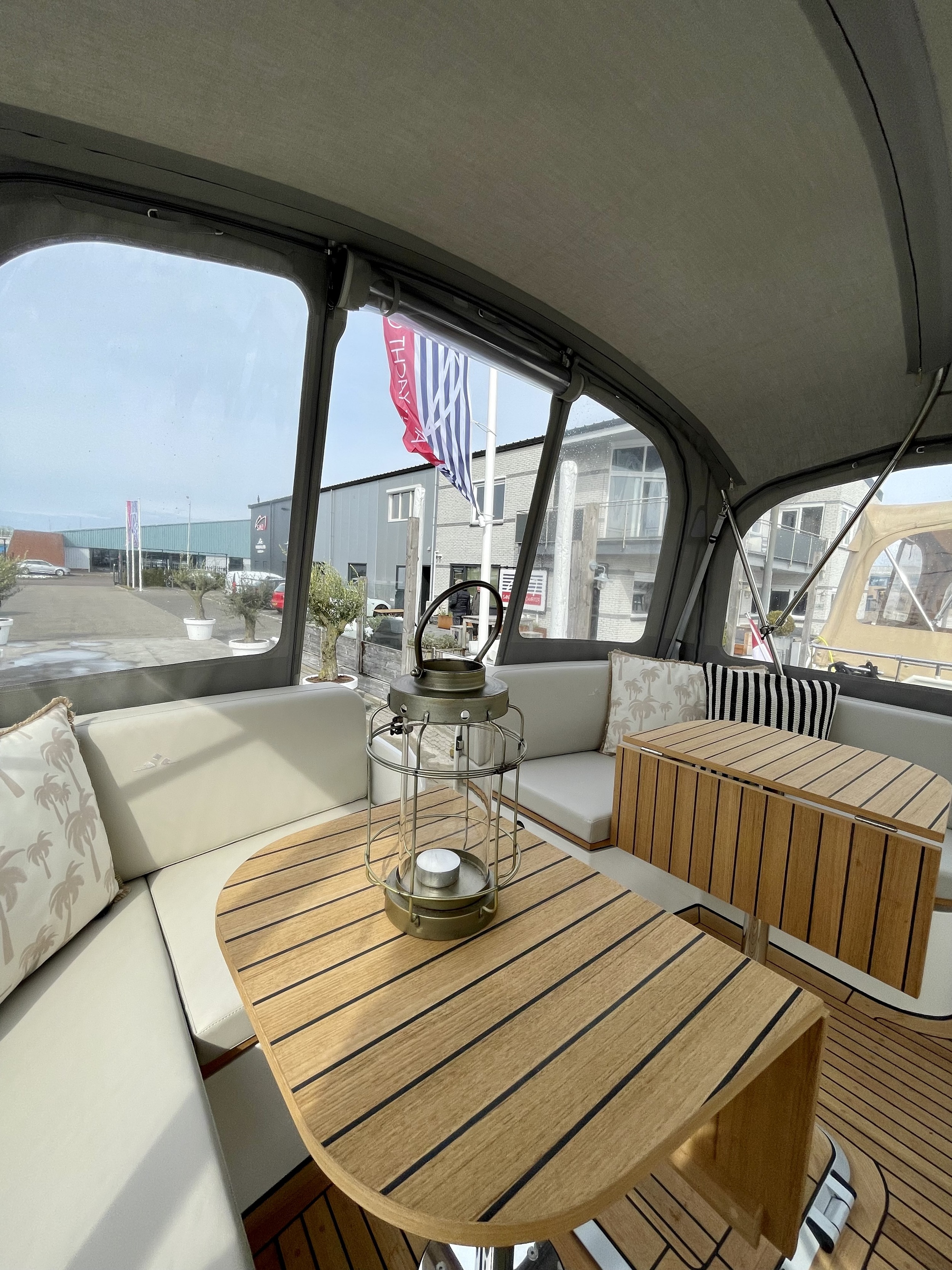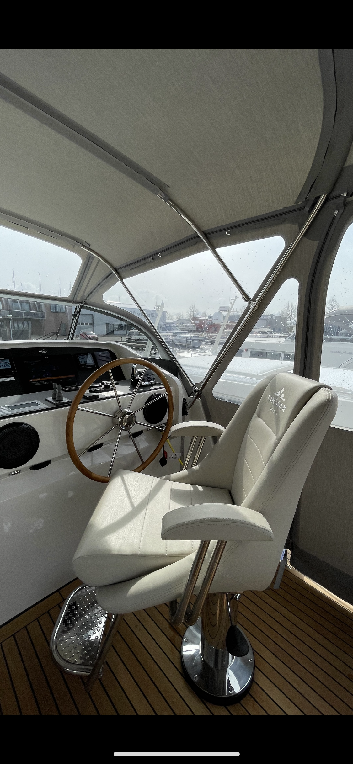 On the aft deck is a comfortable, ergonomic helm seat, which is adjustable. A spacious corner bench with an original Linssen cushion set with a divisible teak table with beautiful high-gloss stainless steel legs make the aft deck a wonderful place to spend time with the entire crew.