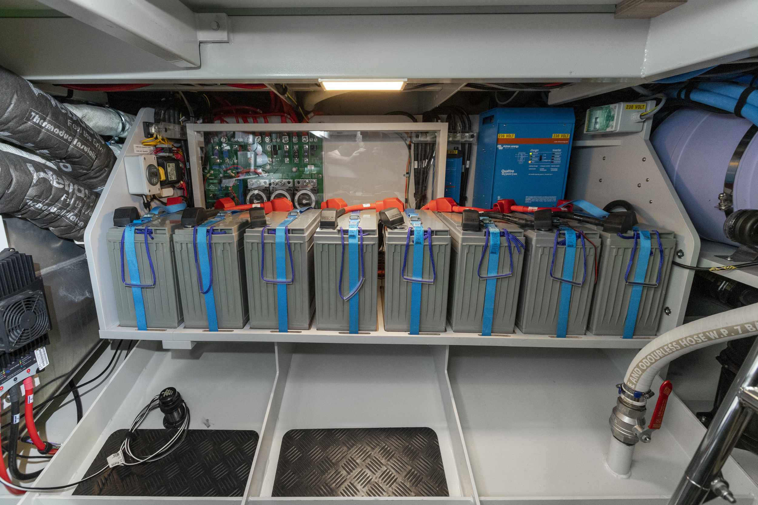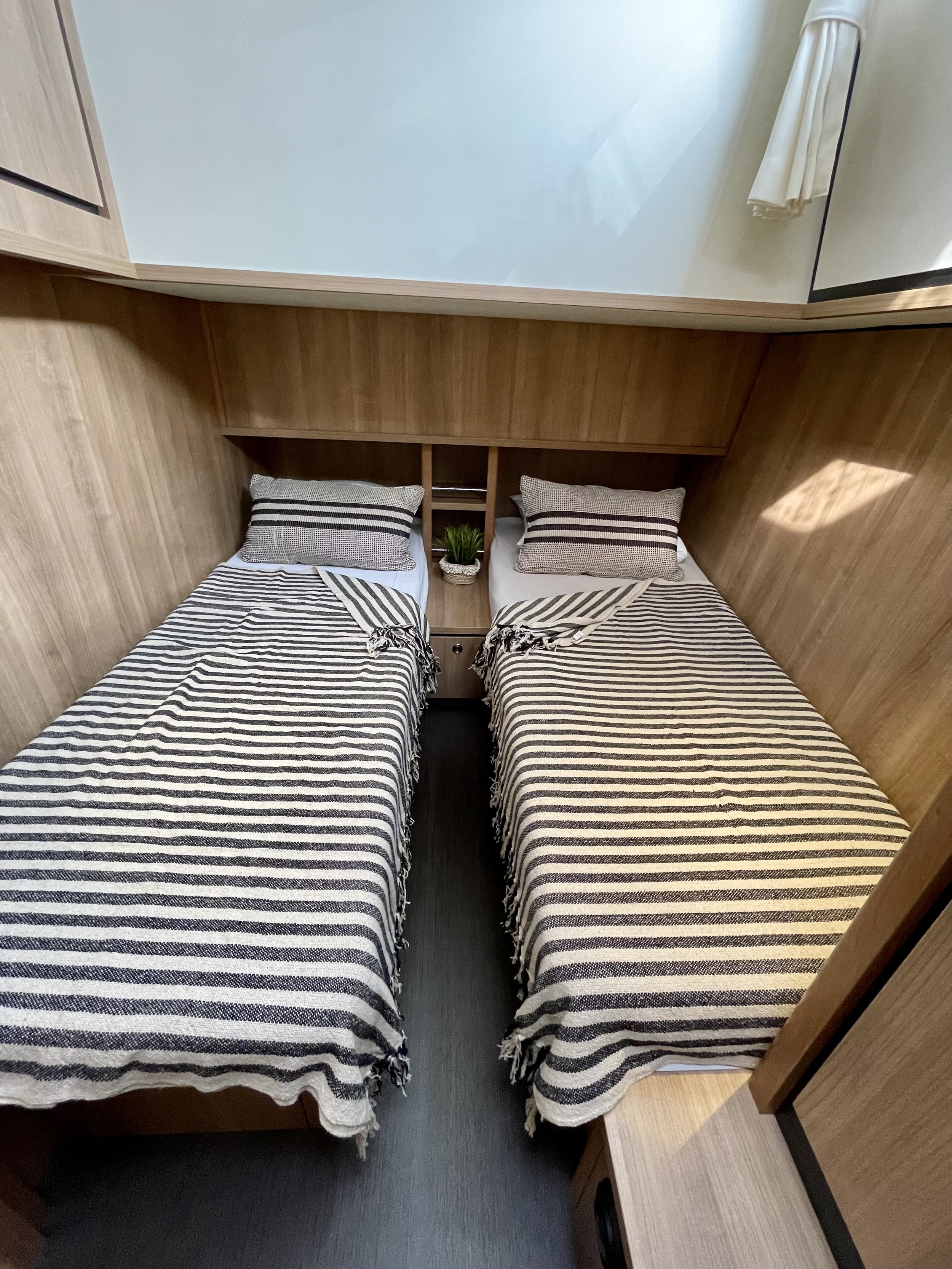 A lot of storage space on this yacht is remarkable. Spacious closets and generous drawers under the bed provide even more storage space.