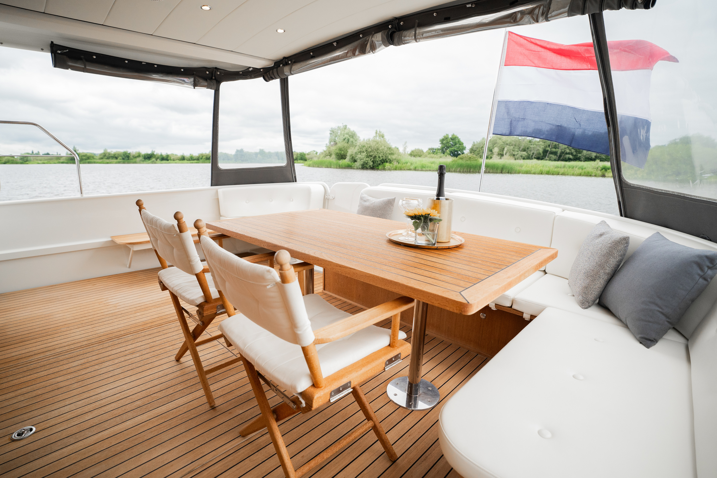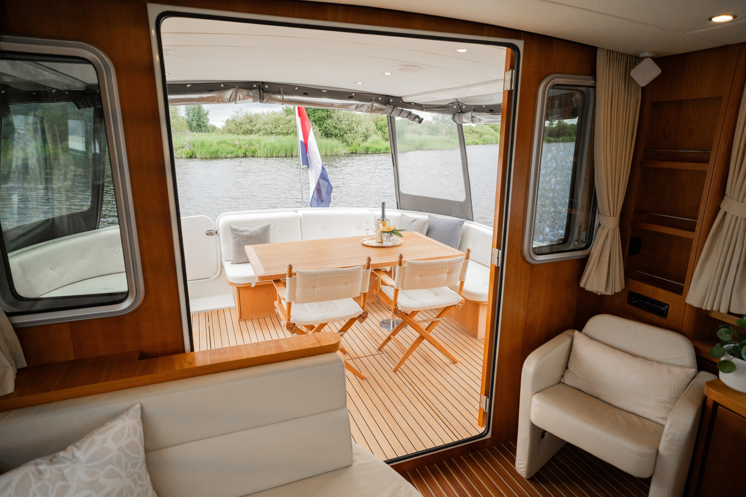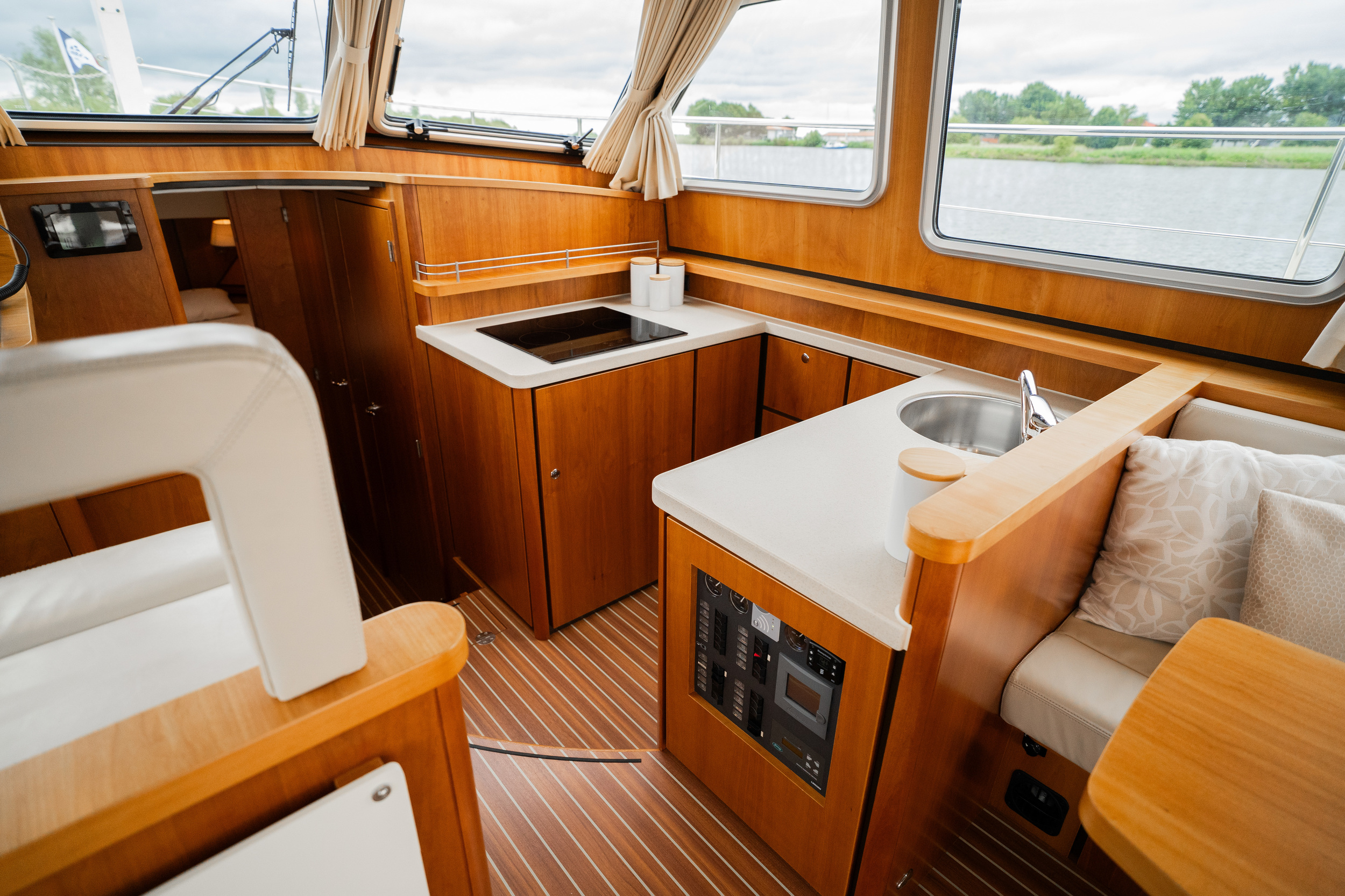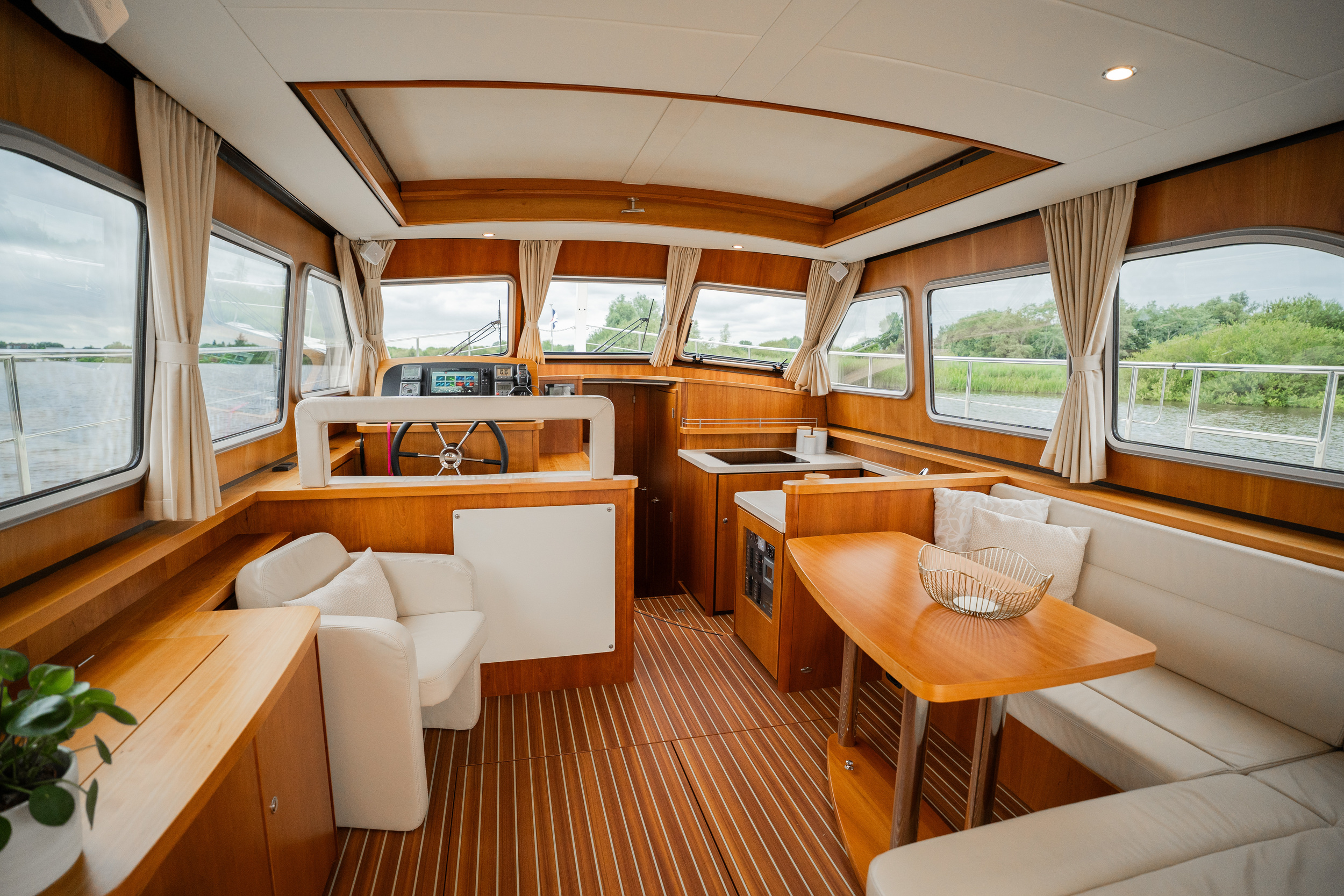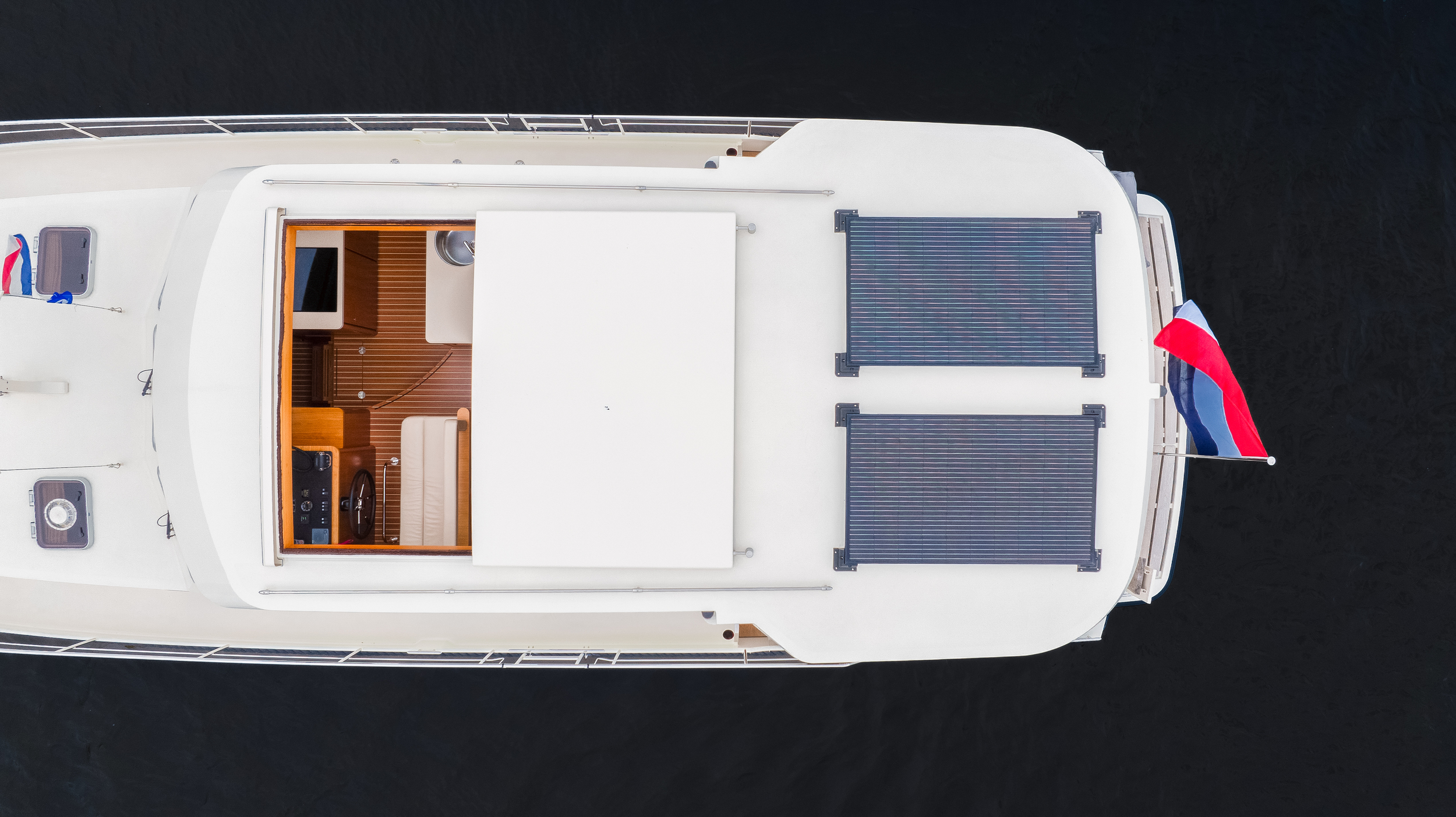 The sliding roof above the steering position opens over the entire saloon width and provides the ultimate outdoor feeling.