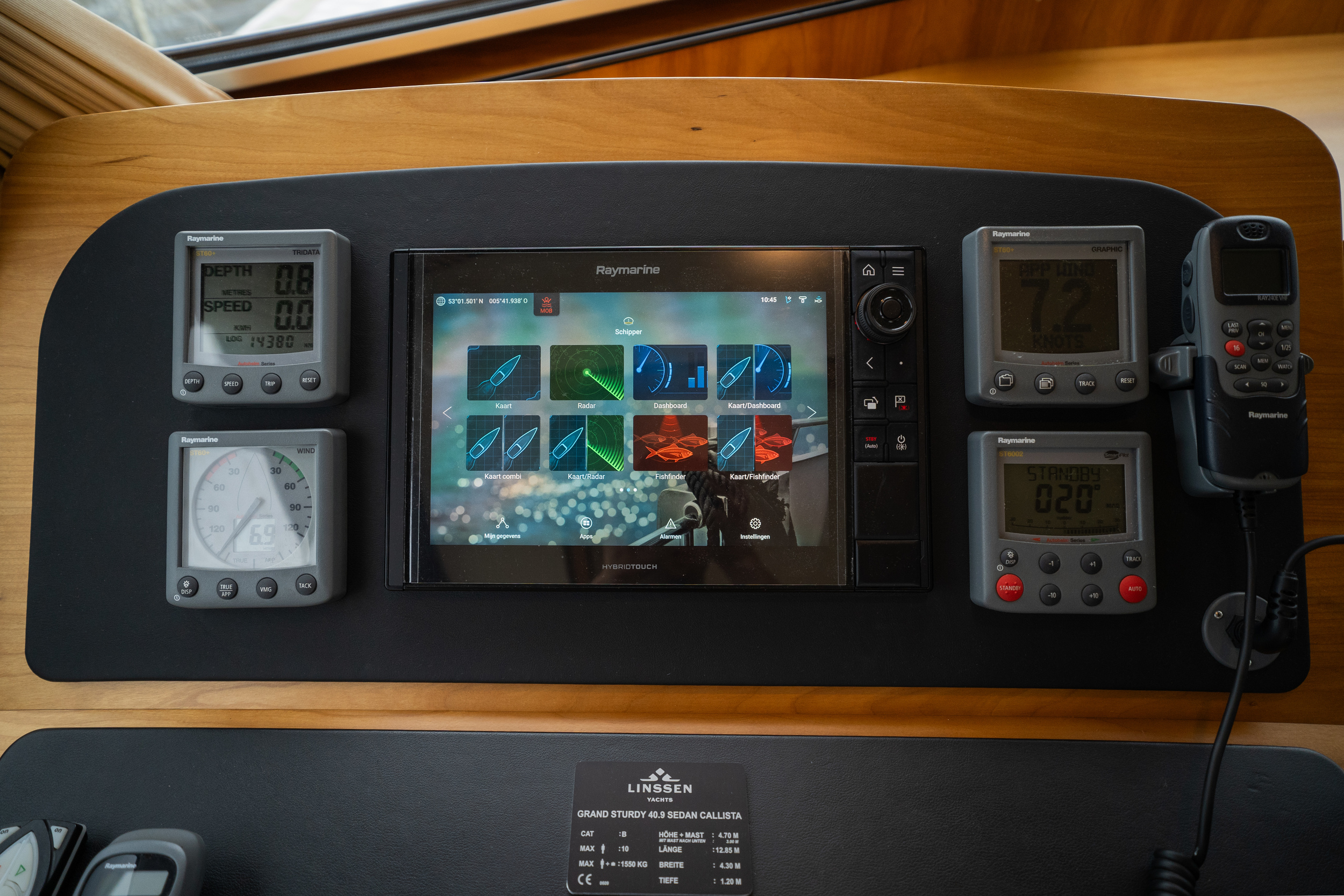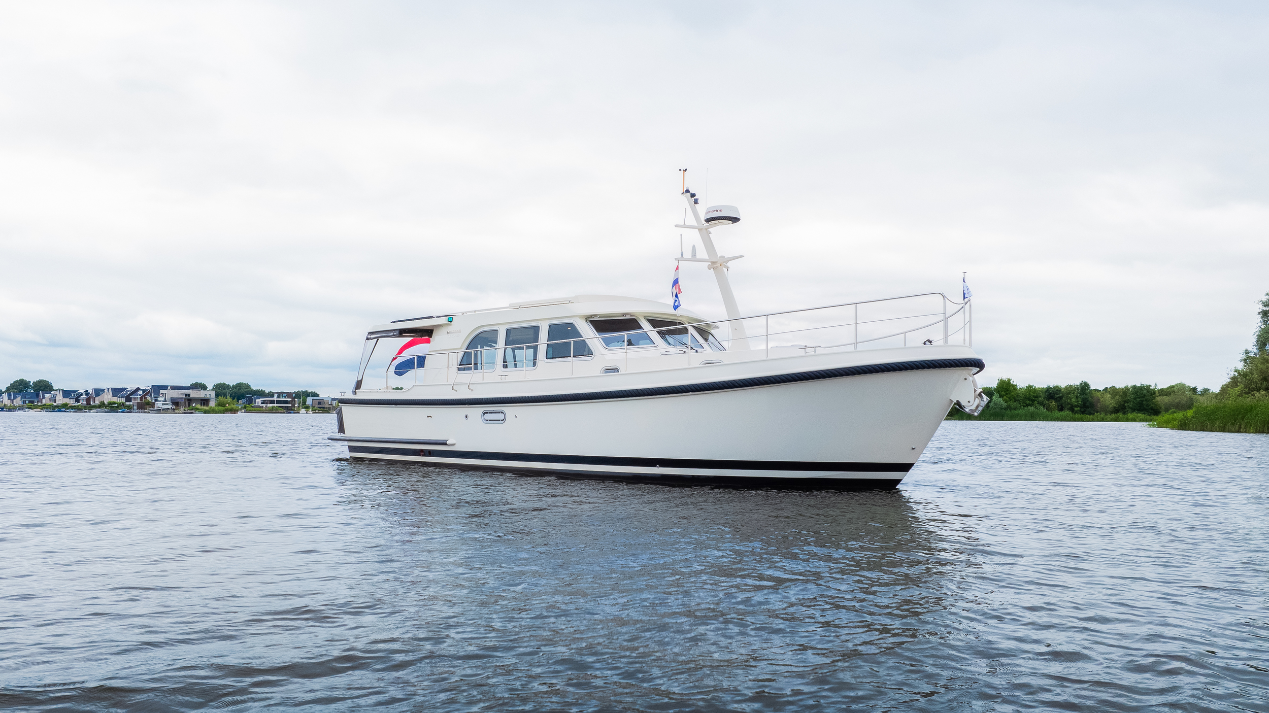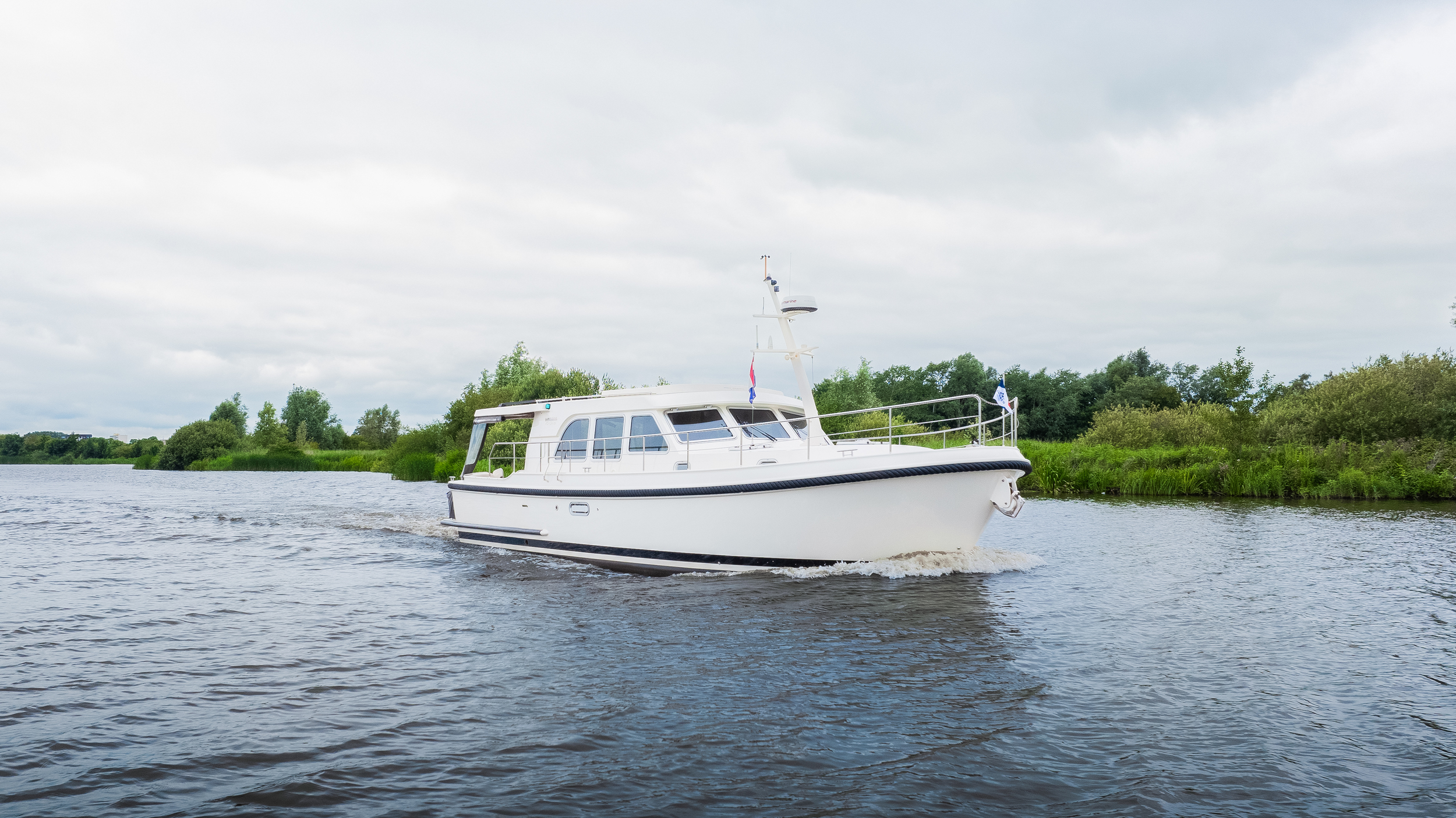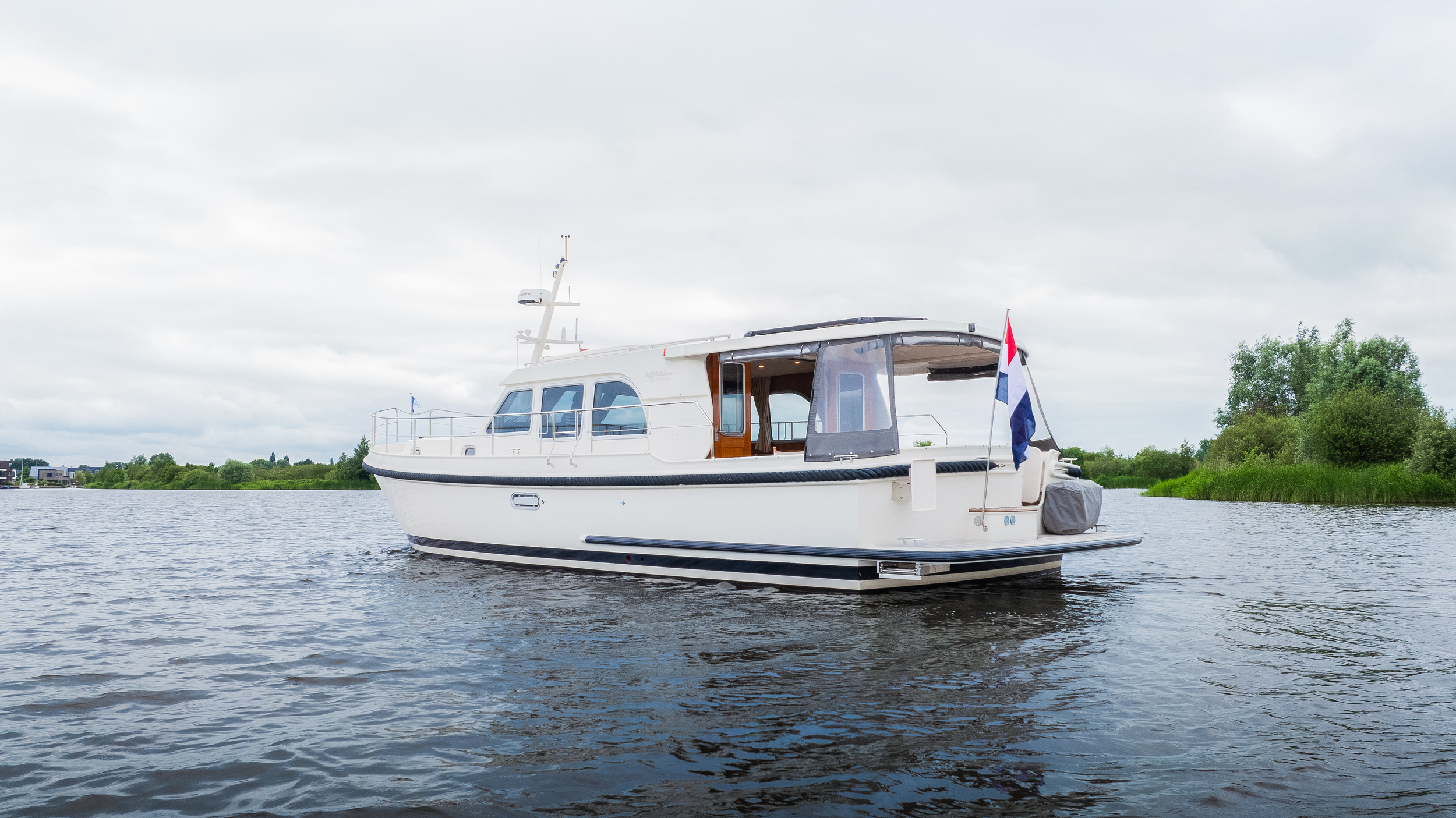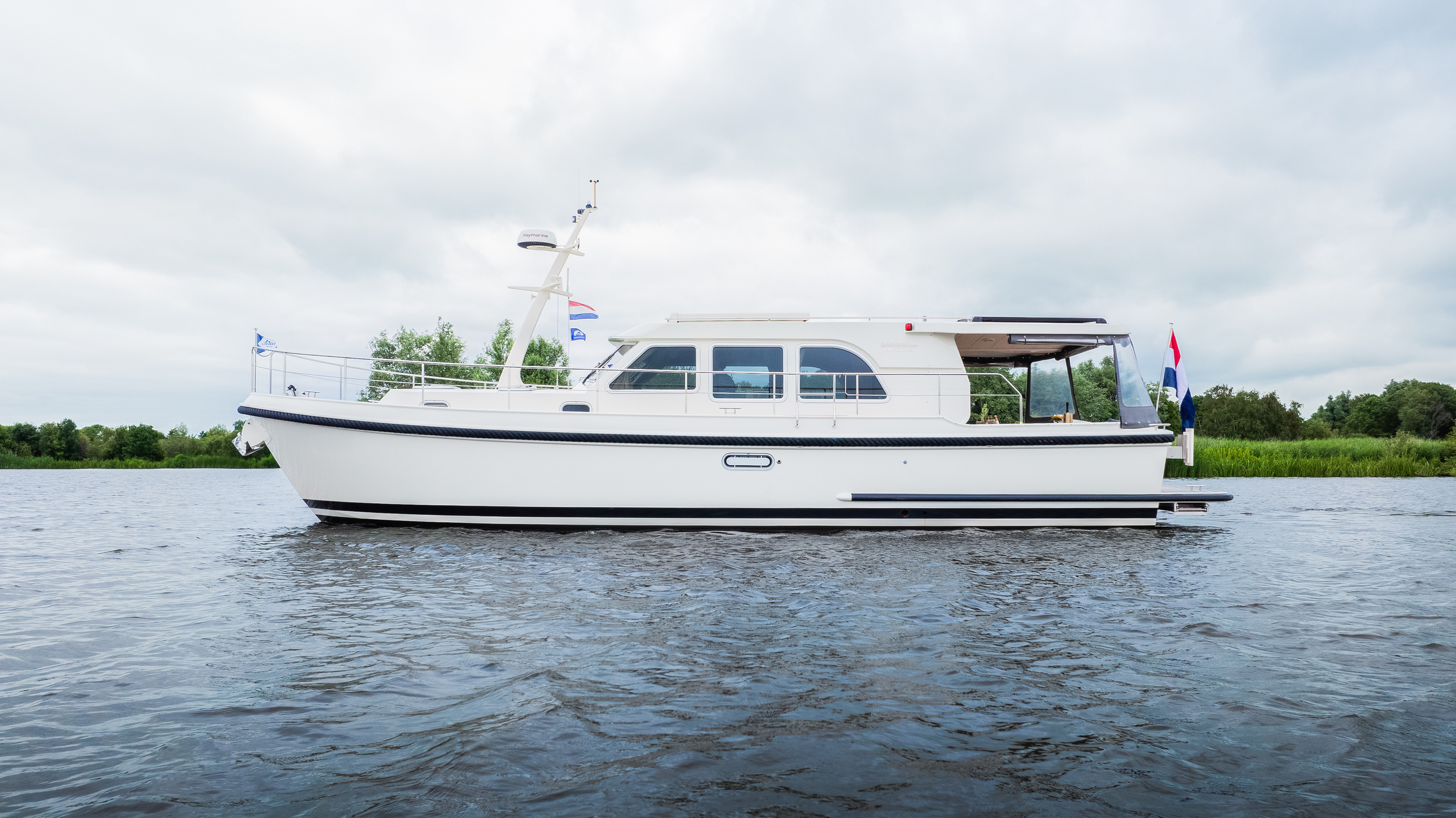 Very spacious and charming sedan model from Linssen Yachts. Sublime sailing characteristics, very easy for anyone to handle. The yacht is equipped with a quiet Volvo D3-110 hp drive and a full navigation package including Tridata, VHF, AIS, radar, new plotter. Typical Linssen looks with maritime wheeling around the yacht gives this yacht a sympathetic and original look.