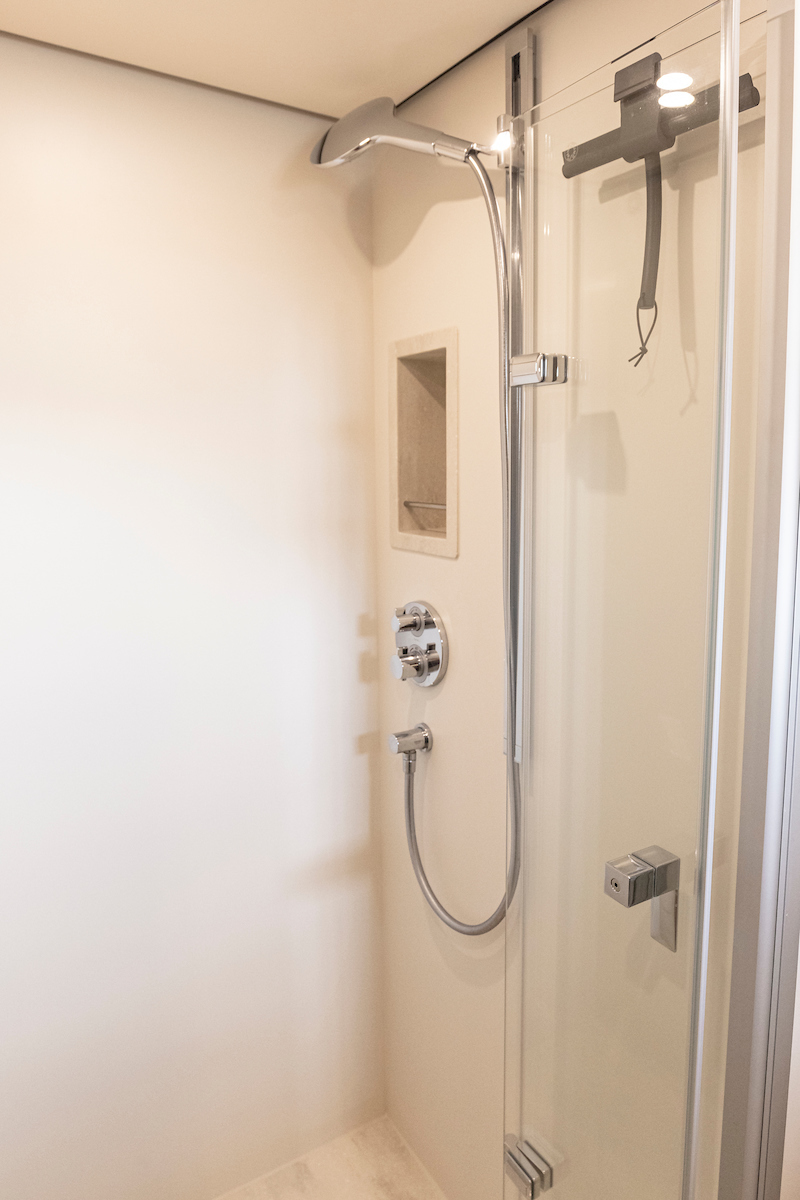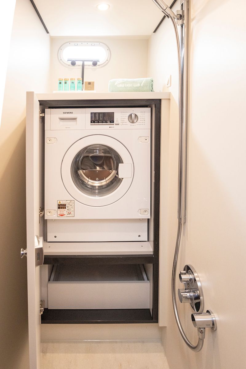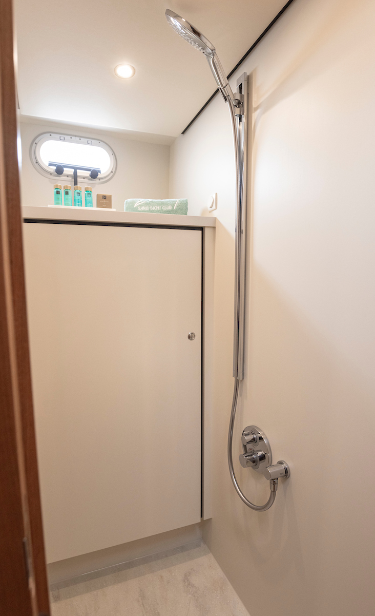 The shower in the forward cabin is equipped with a clothes dryer, which is comfortable for longer stays on board.