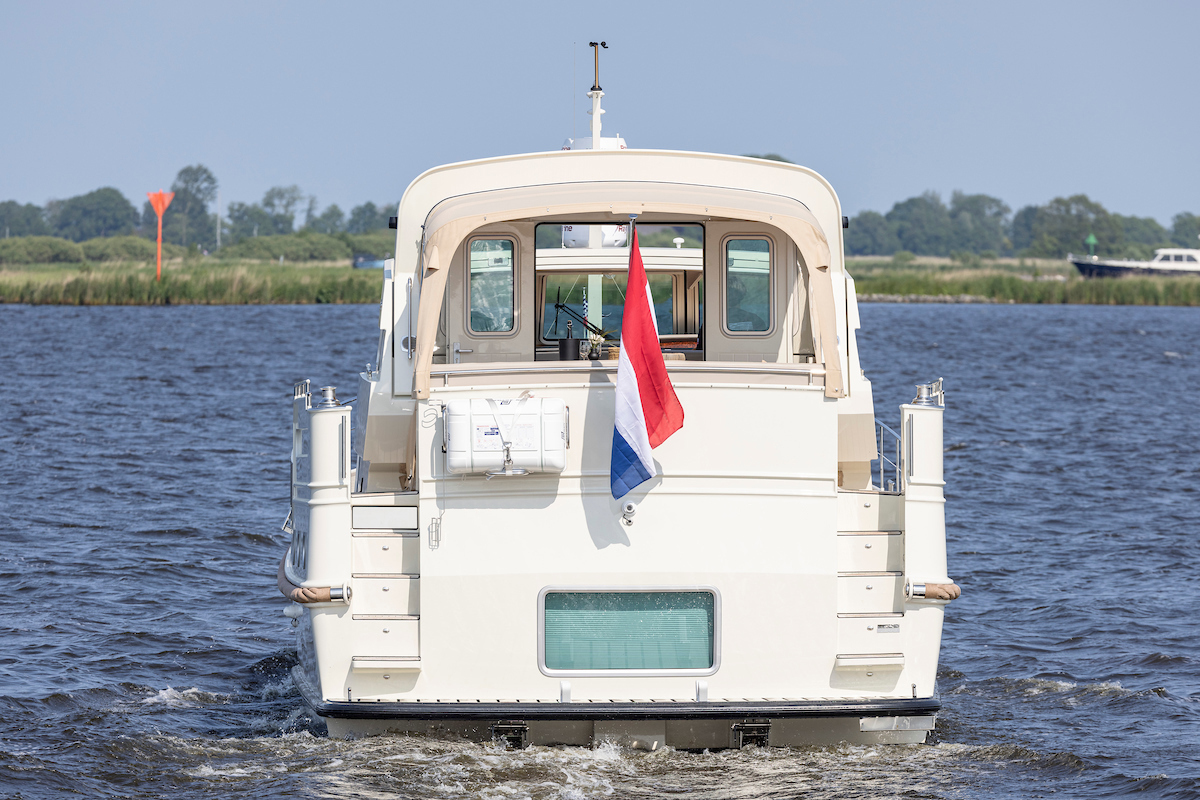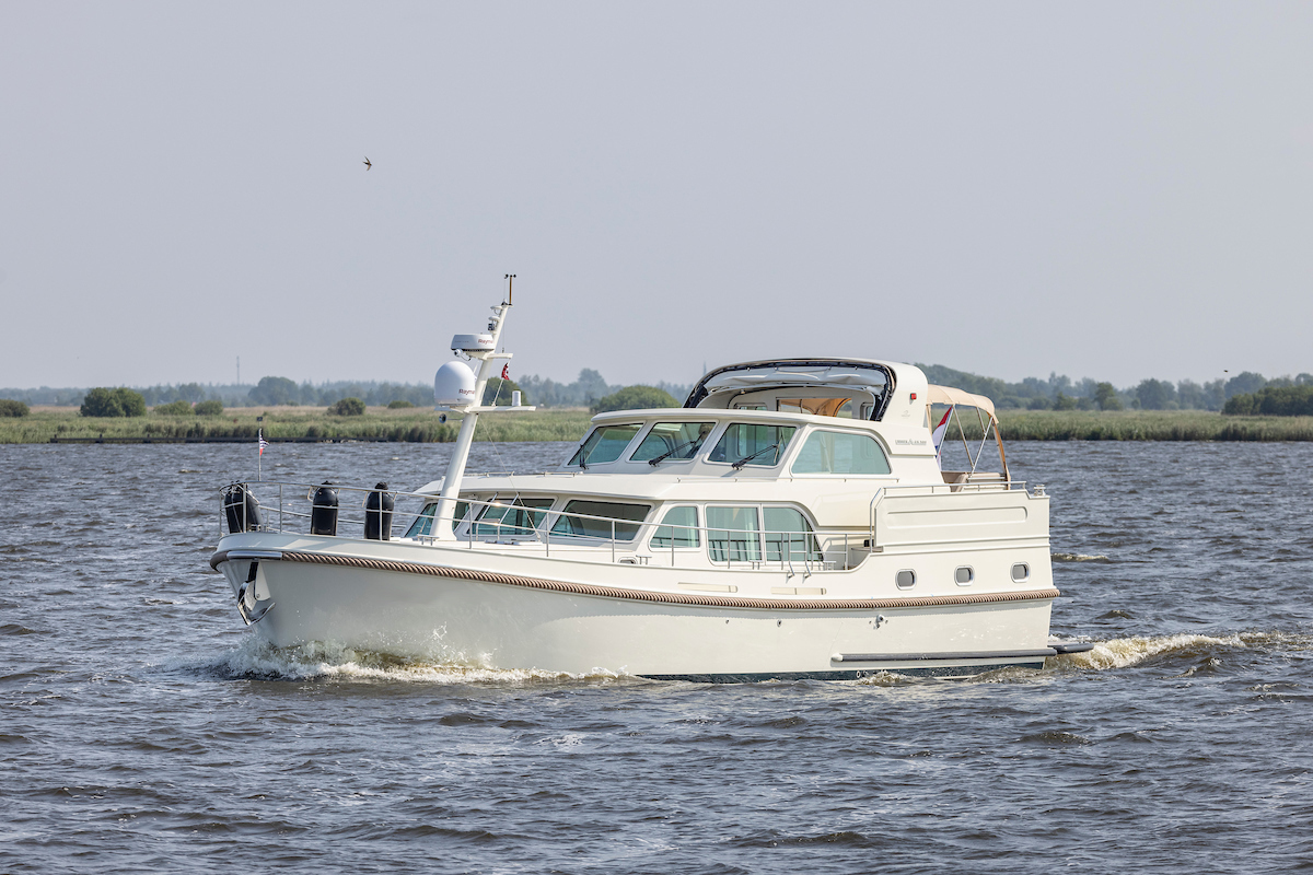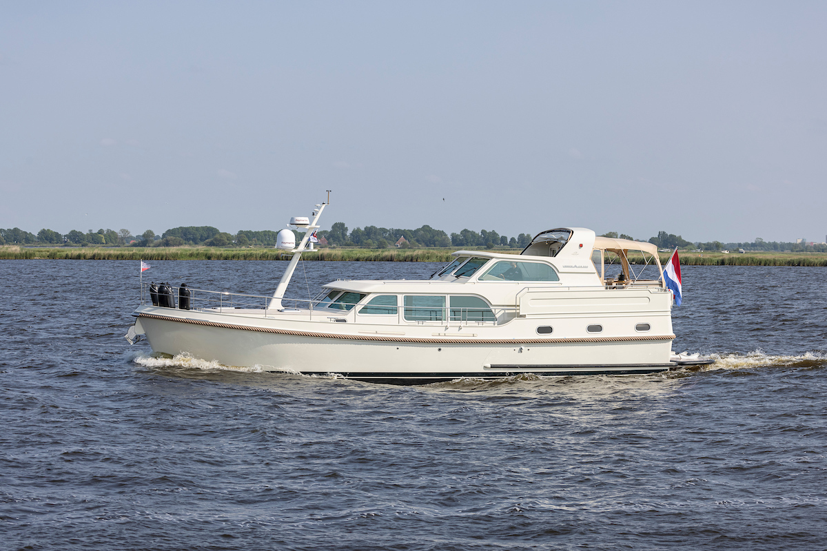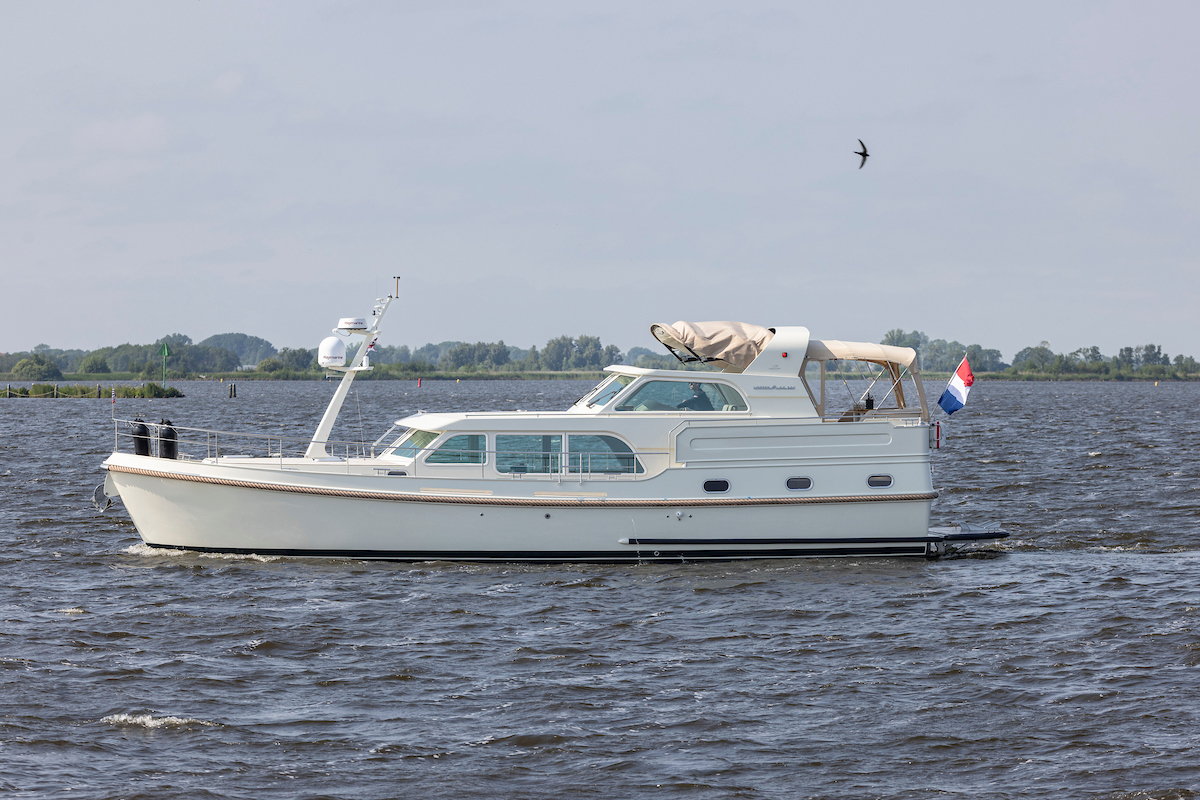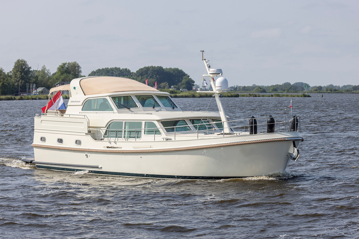 A top model from Linssen Yachts with all the luxury options and with stabilizers and air conditioning. Fully equipped for even big waters (Blue Water) and long trips. Very chic yacht.