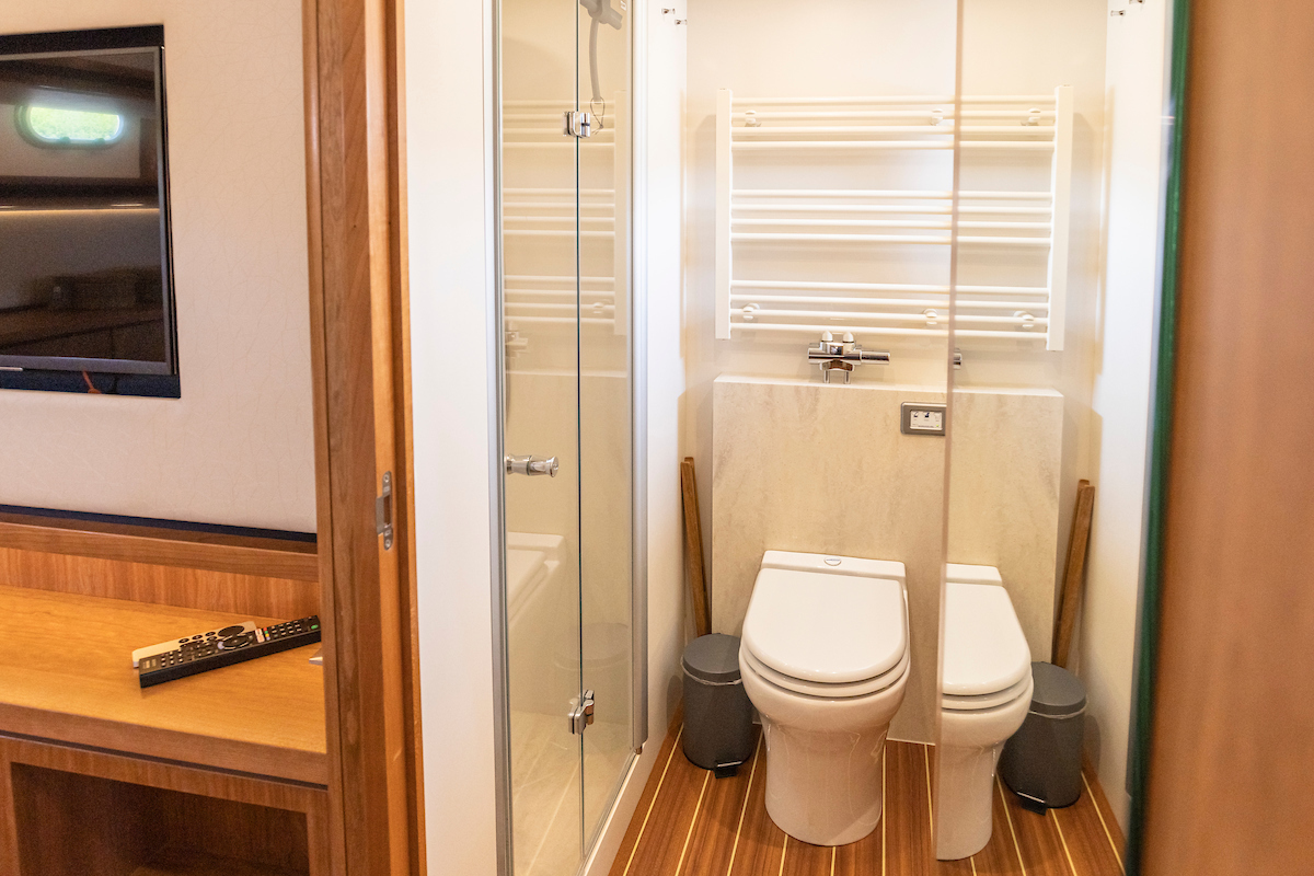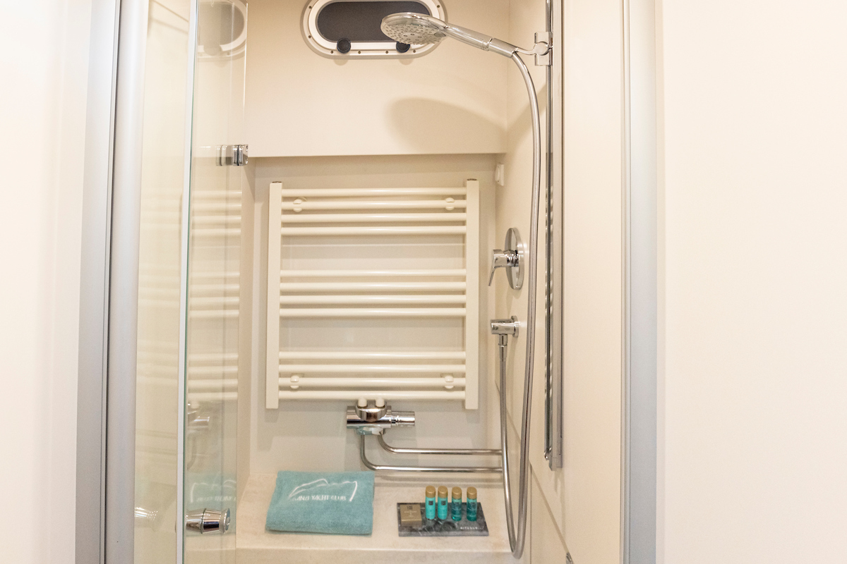The shower in the forward cabin is equipped with a clothes dryer, which is comfortable for longer stays on board.